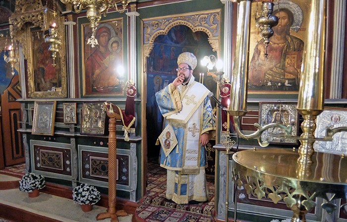 Αἰδ. π. Δημήτριος λειτουργῶν,
